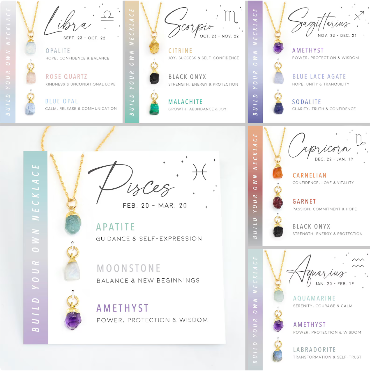 - Our Zodiac gemstone necklaces are not just accessories but meaningful tokens that resonate with your zodiac sign.