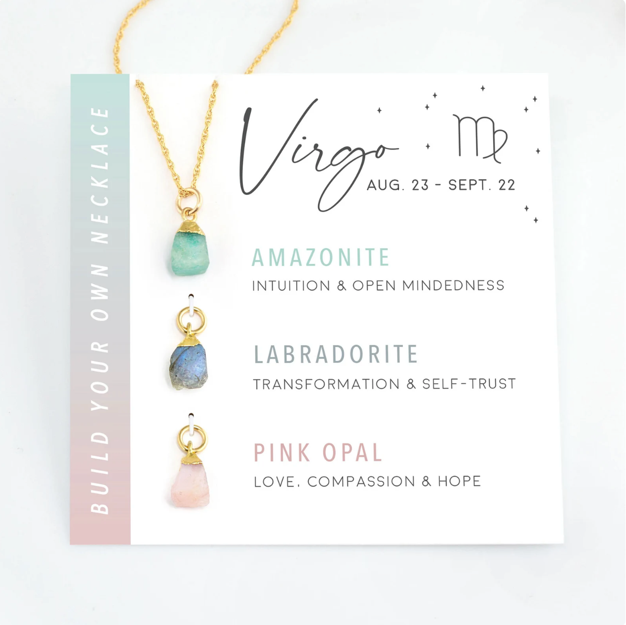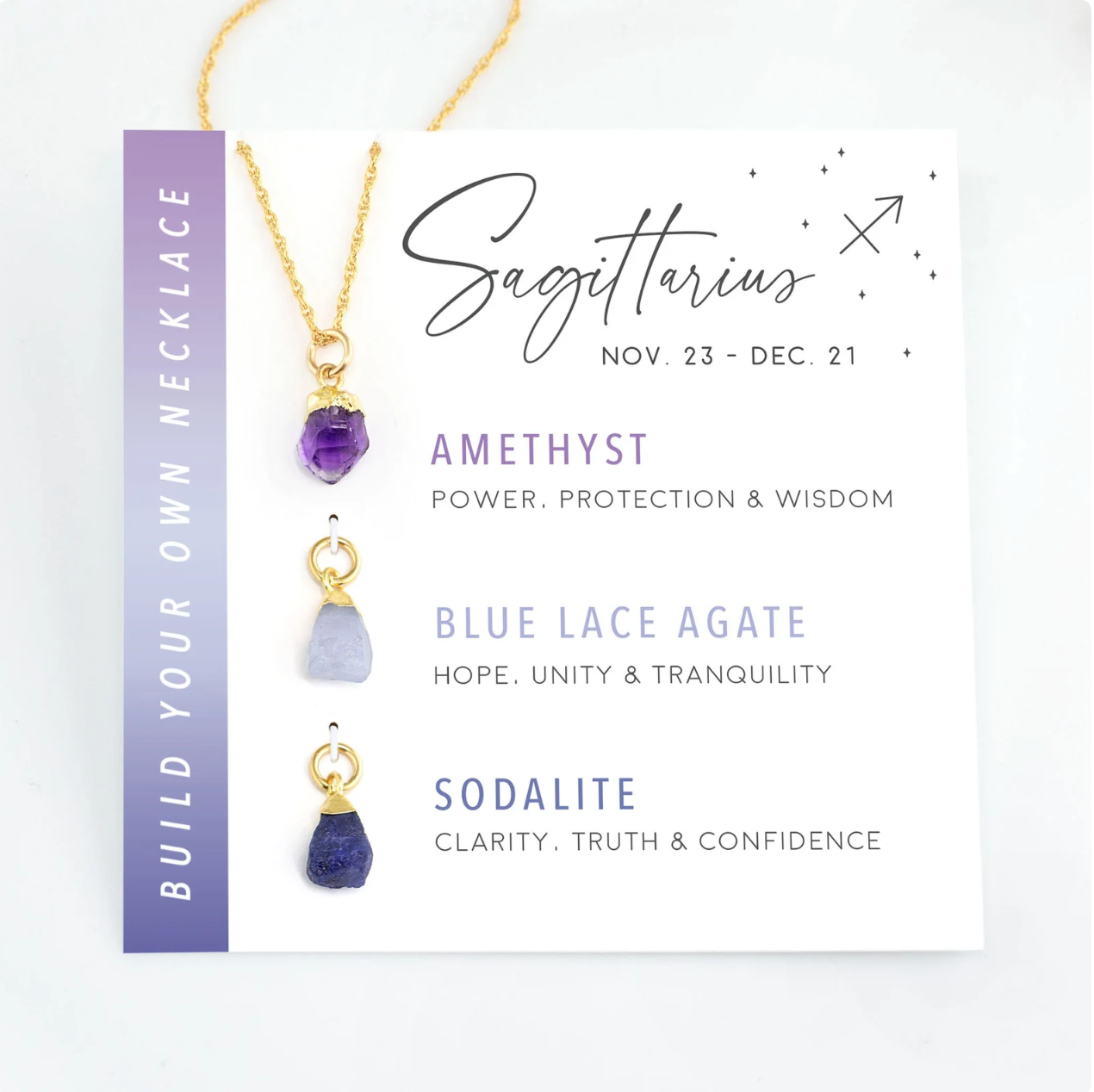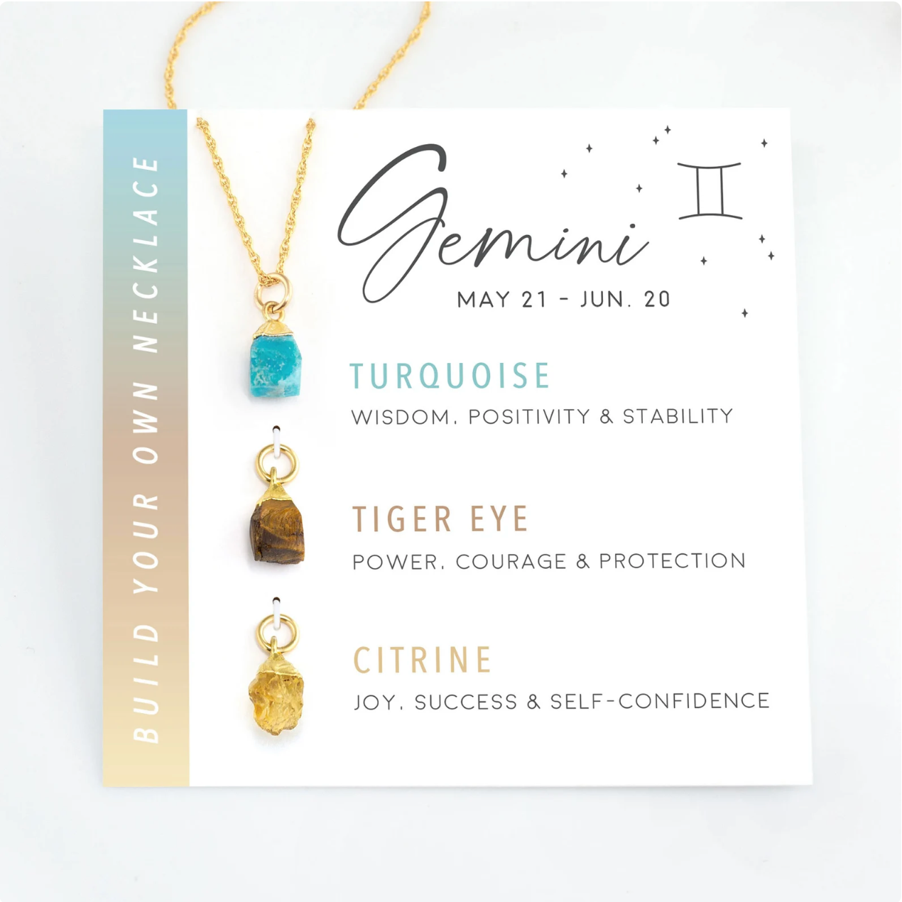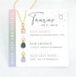 Tarnish Free - Natural Stone Zodiac Crystal Card Necklace - 3 Piece Gift Set