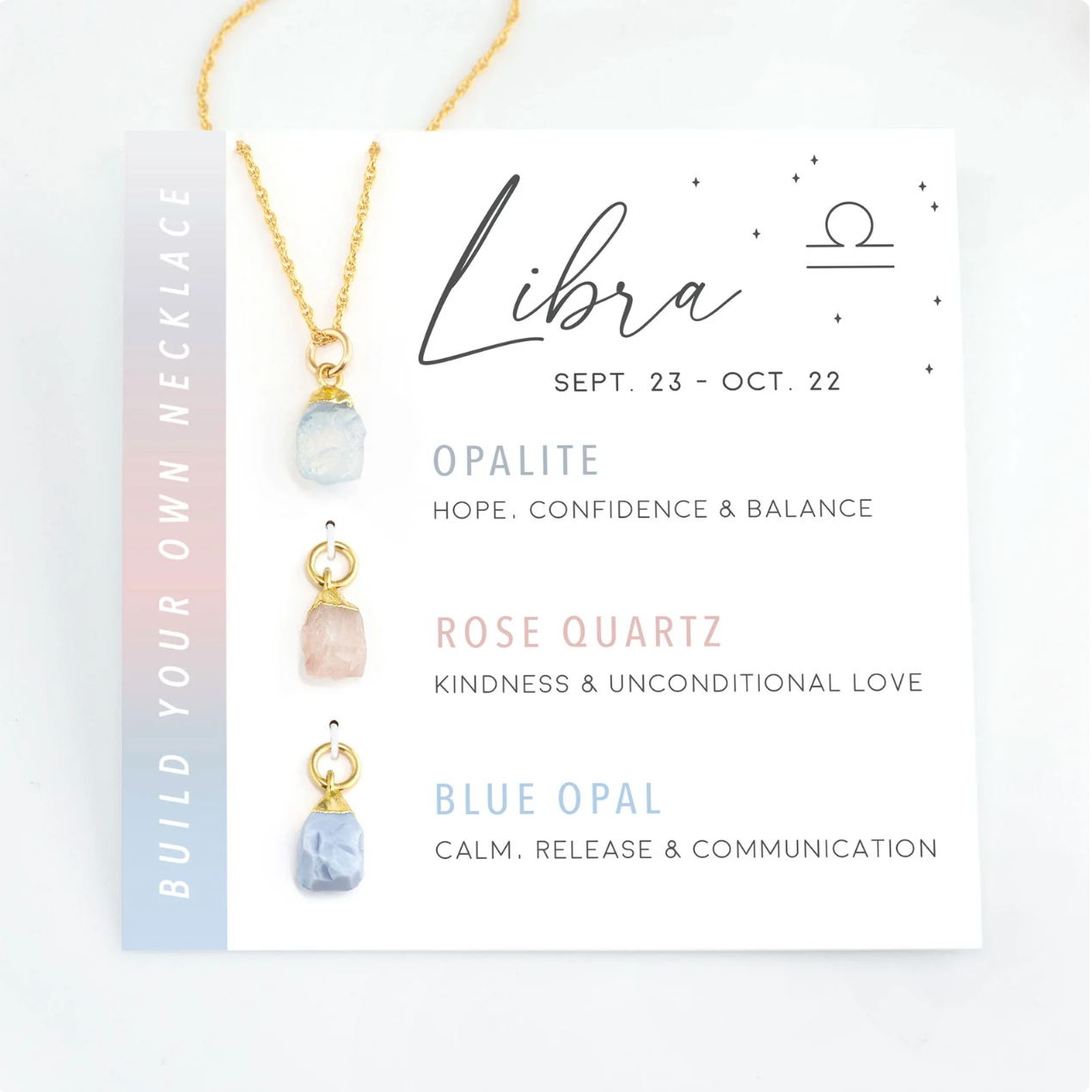- Opalite: Balance and beauty are the hallmarks of Libra, and Opalite embodies these qualities with its shimmering play of colors, promoting hope, confidence, and balance.